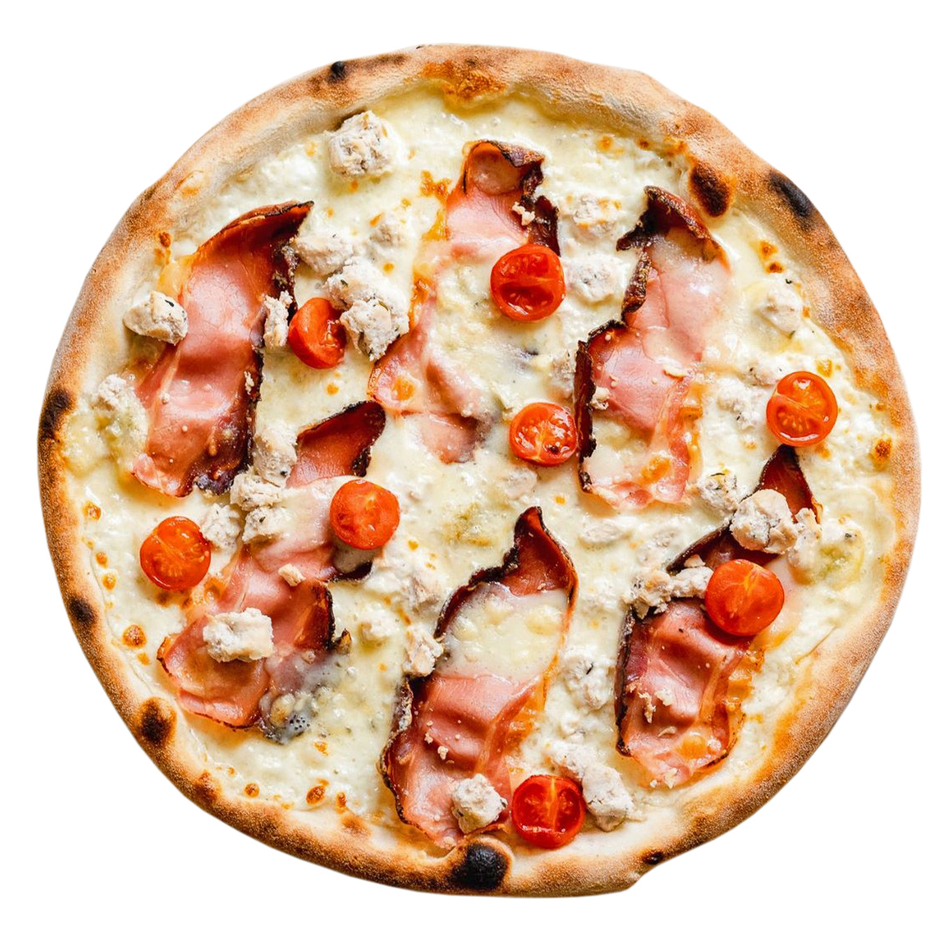 Poulet tendre, jambon fumé et tomates cerises sur base crème onctueuse: la générosité des saveurs du terroir.